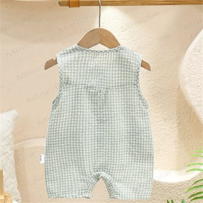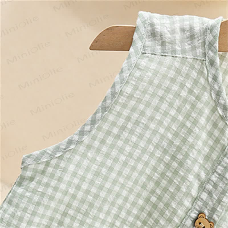 Baby Bear Plaid Pocket Sleeveless Romper