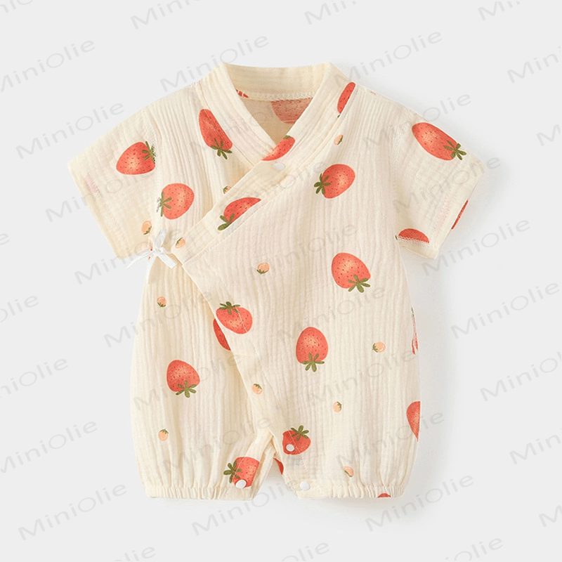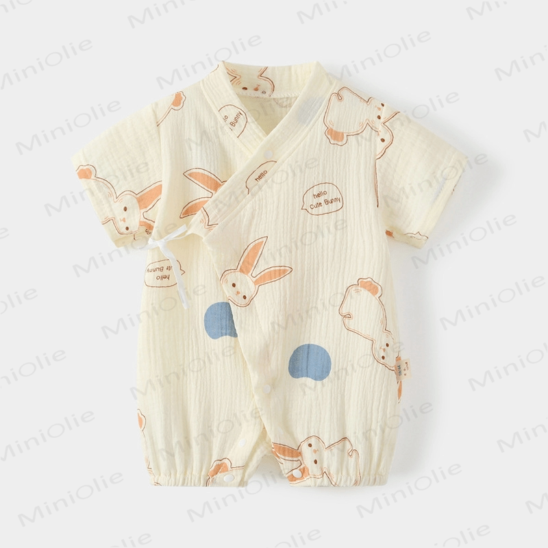 Baby Cartoon Printed Kimono Beige Romper
