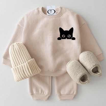 Baby Cute Black Cat Beige Sweatshirt 2-piece Set