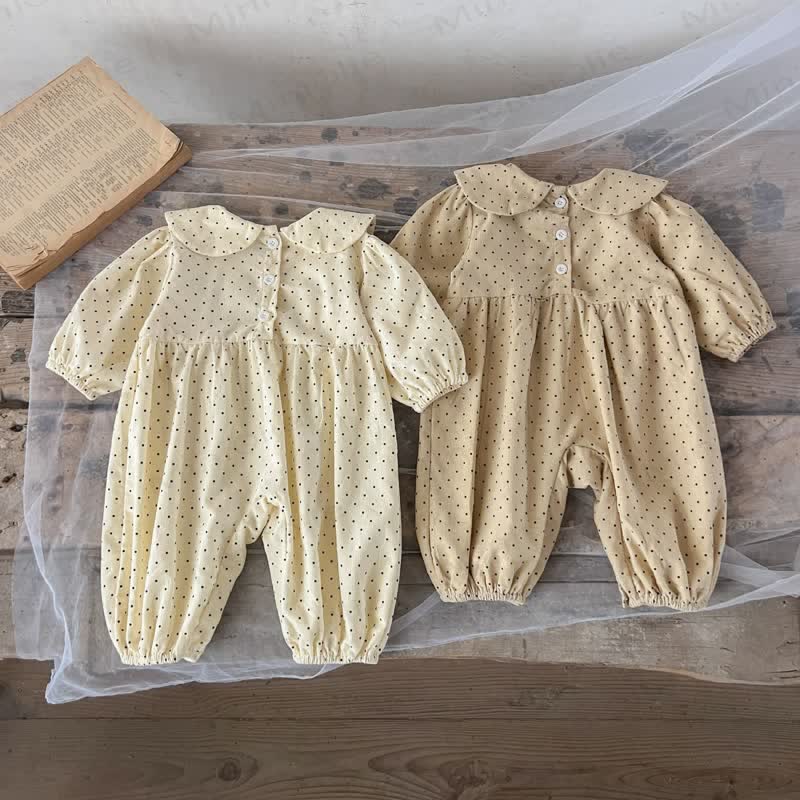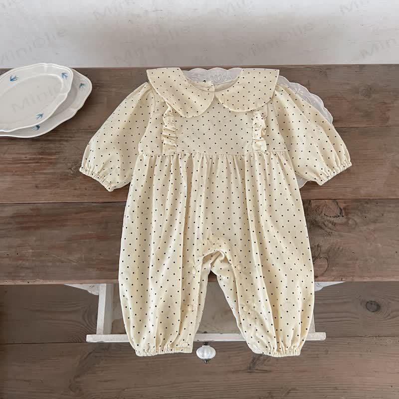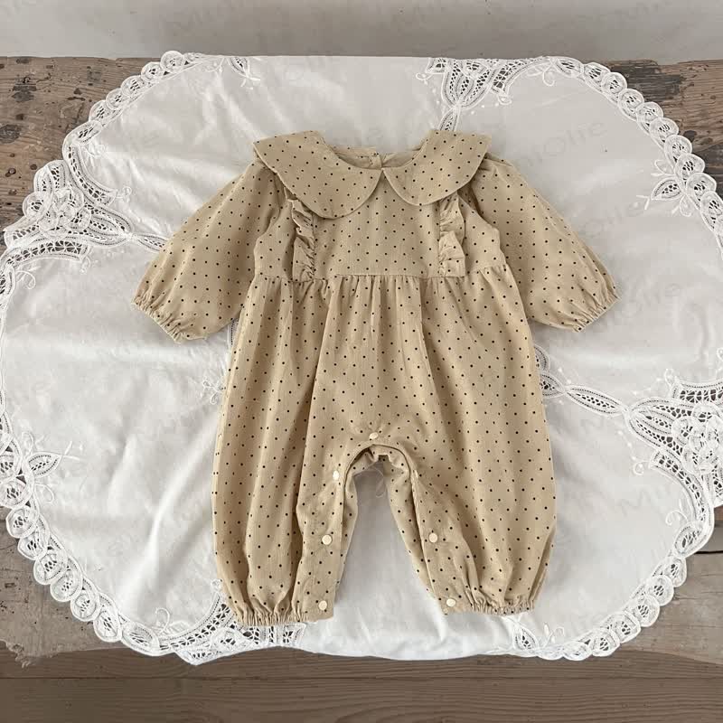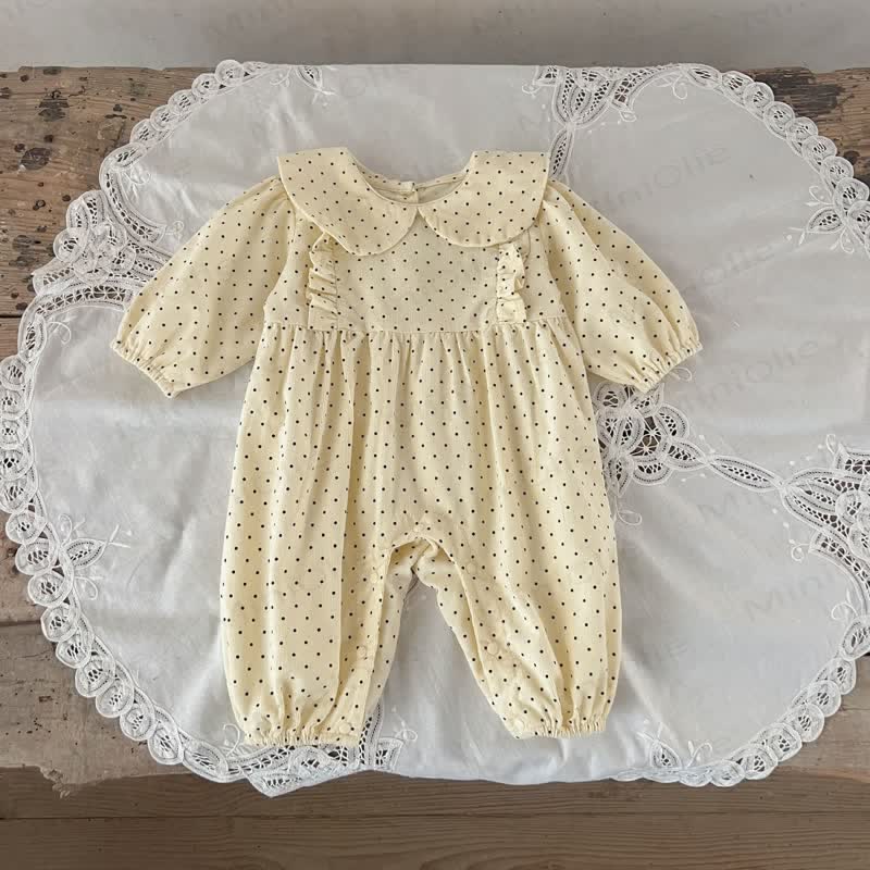 Baby Girl Doll Collar Polka Dots Romper