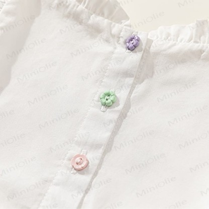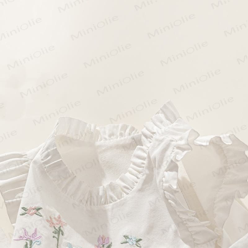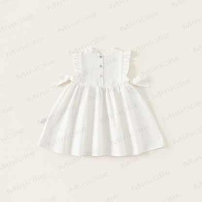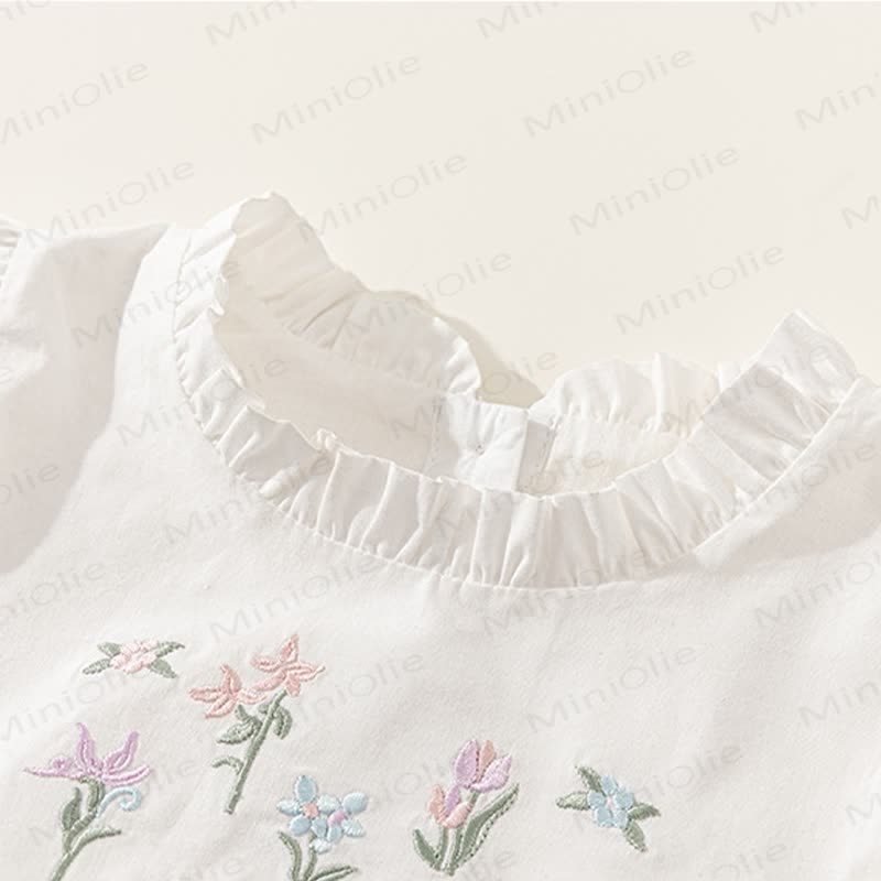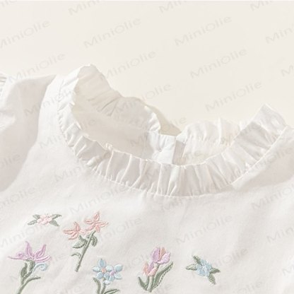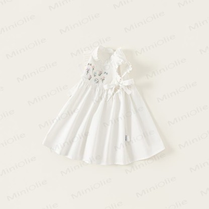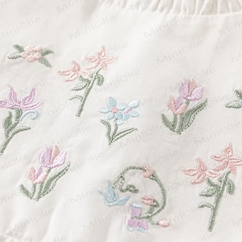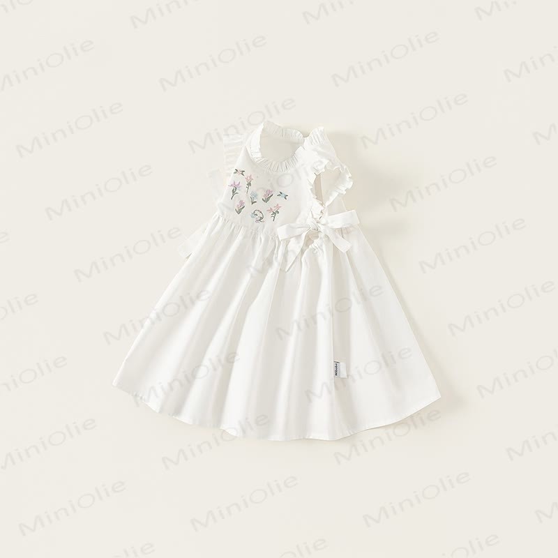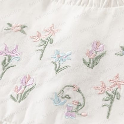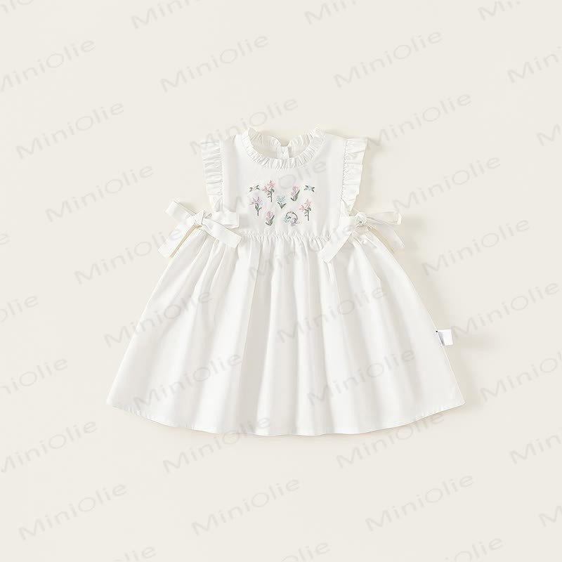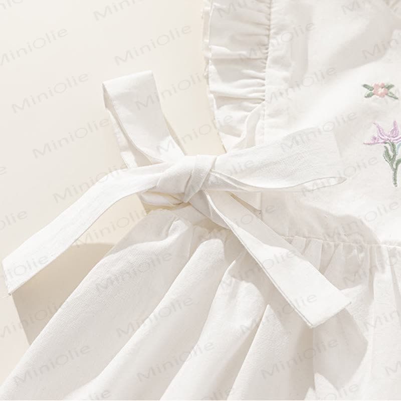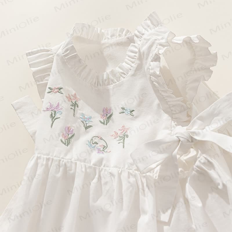 Toddler Embroidered Flower Pastoral Style White Dress